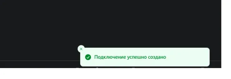 Если все параметры указаны корректно, то в правом нижнем углу вы увидите сообщение “Подключение успешно создано”